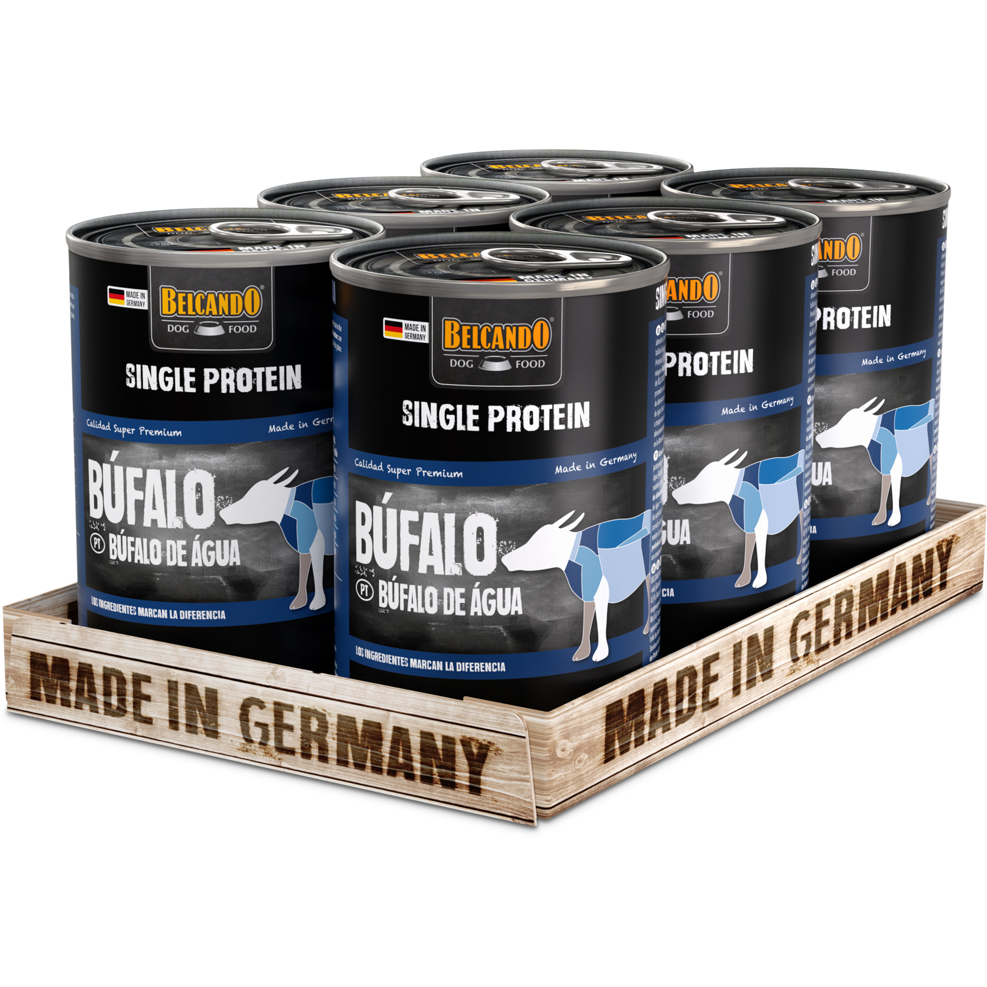 Nuestra comida en lata BELCANDO Single Protein está disponible en 6 selectas variedades de carne. No contiene ningún otro aditivo. La comida húmeda Single Protein combinada con el complemento alimenticio BELCANDO Mix it GF es una fuente de proteínas ideal en el caso de dietas de eliminación destinadas a averiguar el tipo de carne al que su perro reacciona con sensibilidad. Single Protein se puede utilizar como alimentación permanente en caso de intolerancias alimentarias, de nuevo junto con BELCANDO Mix it GF.