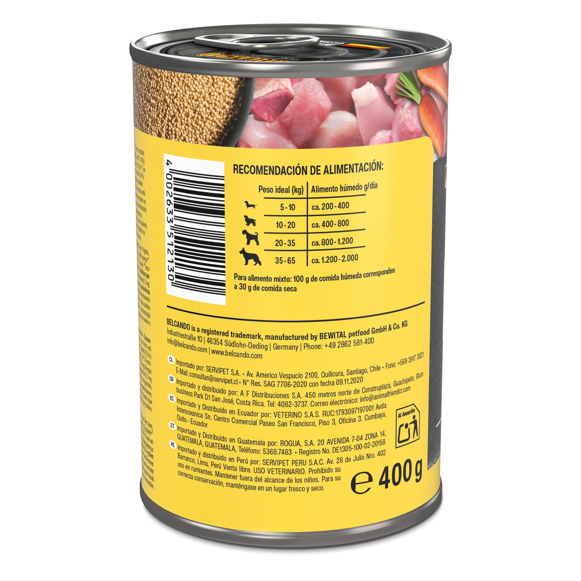 | Peso ideal (kg) | Alimento húmedo g/día |