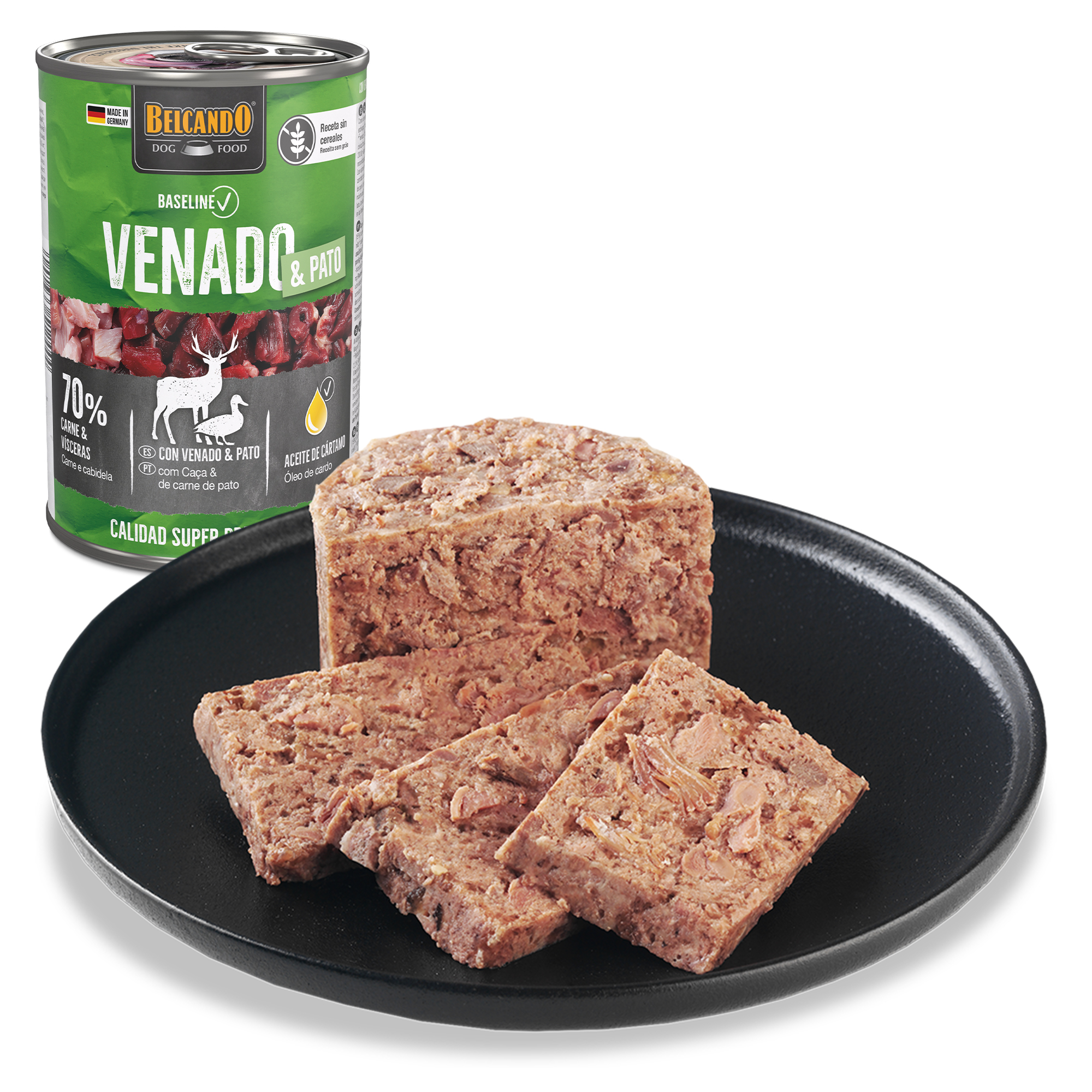 Composición Carne de venado (venado, jabalí) (15 %); carne de pato (13 %); caldo de carne*¹*²*³*⁴ (26,8 %); hígado*¹; estómago*¹; corazón*¹; riñones*¹; pulmón*¹; cáscaras de huevo*⁵; minerales; aceite de cártamo (0,2 %) *¹cerdo *²venado *³jabalí *⁴pato *⁵secado