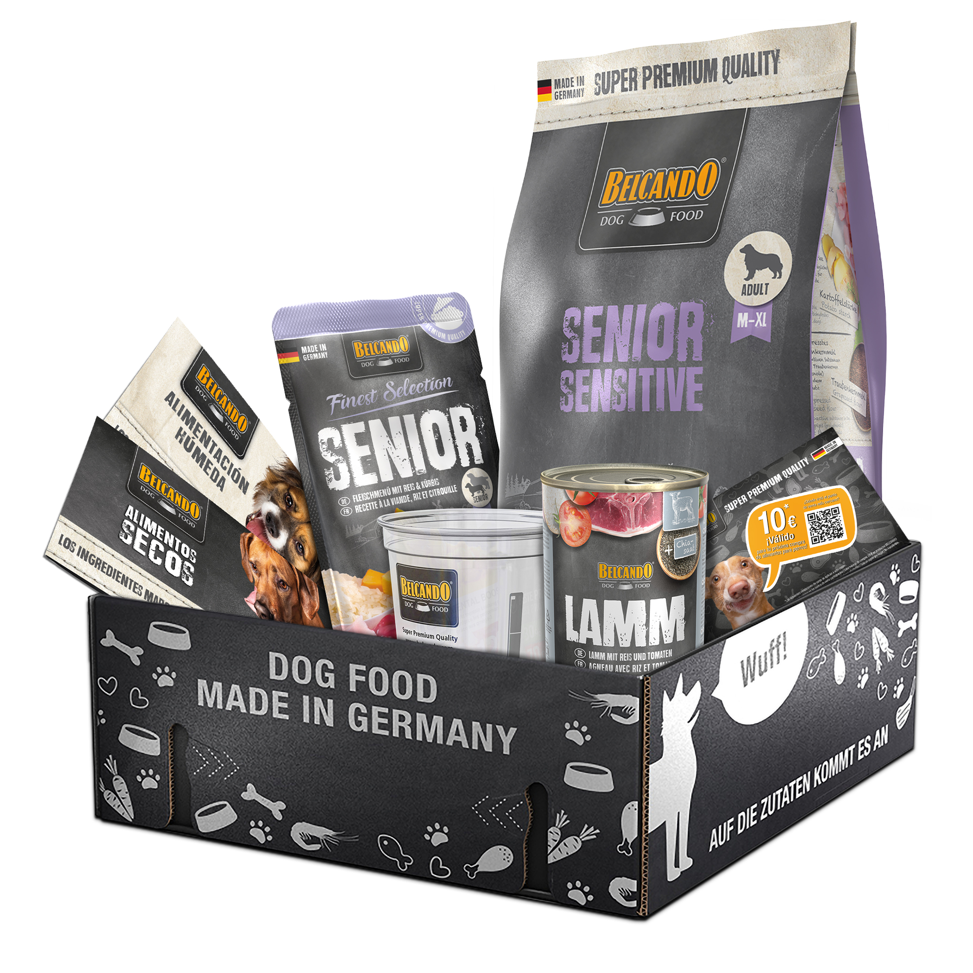 También recibirás una lata de nuestro menú de comida húmeda "Cordero con arroz y tomate", así como el sobrecito fresco "Menú Senior de carne con arroz y calabaza" de nuestra gama Finest Selection. Lo más destacado del menú de carne: el omega-3 que contiene refuerza el rendimiento mental de tu senior y contribuye a que mantenga su agilidad mental incluso en la vejez.