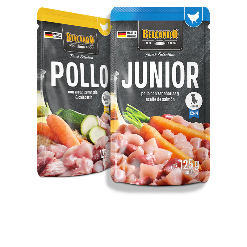 Somos uno de los pocos fabricantes en Europa que elaboran tanto alimento seco como húmedo aquí en Münsterland. La diferencia principal está en el ingrediente base: la carne. El alimento seco se produce tradicionalmente con harina de carne previamente secada, mientras que el alimento húmedo se elabora con carne fresca. En BELCANDO también utilizamos carne fresca como uno de los ingredientes principales en nuestro alimento seco. Los perros notan claramente esta diferencia. ¡Pruébalo y convéncete!